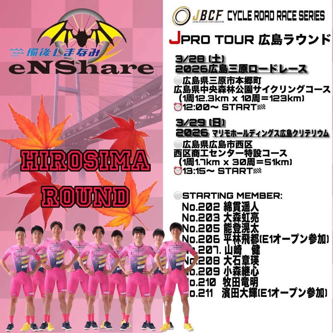 この週末3月28日、29日はeNShareの地元広島でのレース!!